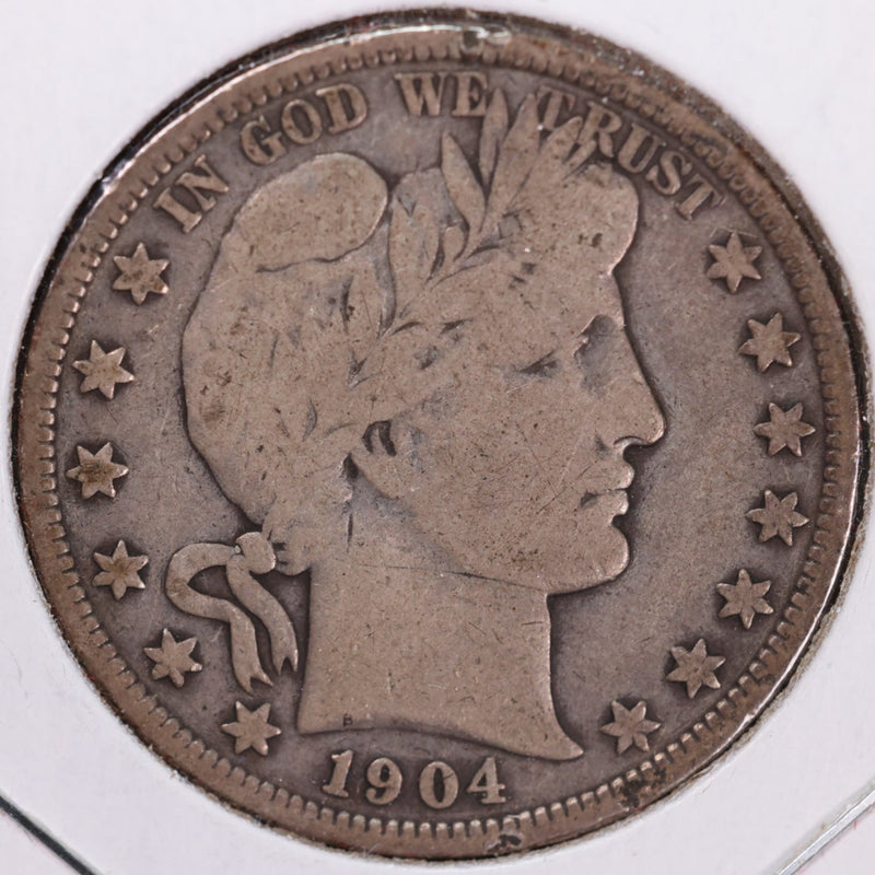 1904 Barber Half Dollar, Very Good+ Circulated Coin, Store #H904.01