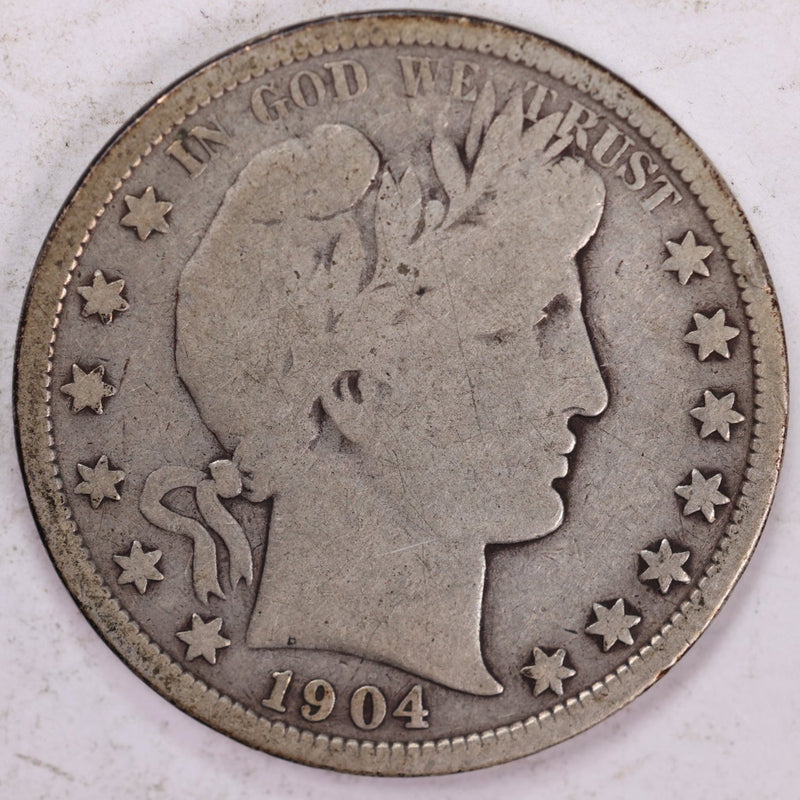 1904 Barber Half Dollar, Very Good Circulated Coin, Store #H904.03