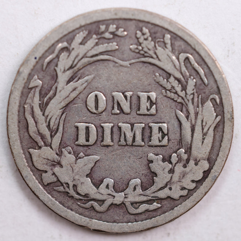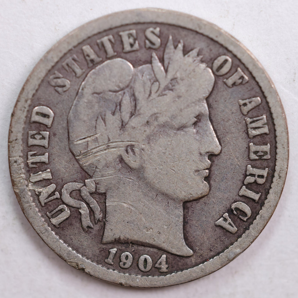 1904 Barber Silver Dime, Very Good Circulated Coin, Store #DE0477