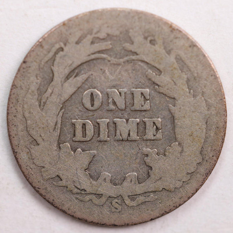 1903-S Barber Silver Dime, Abt Good Circulated Coin, Store #DE0478