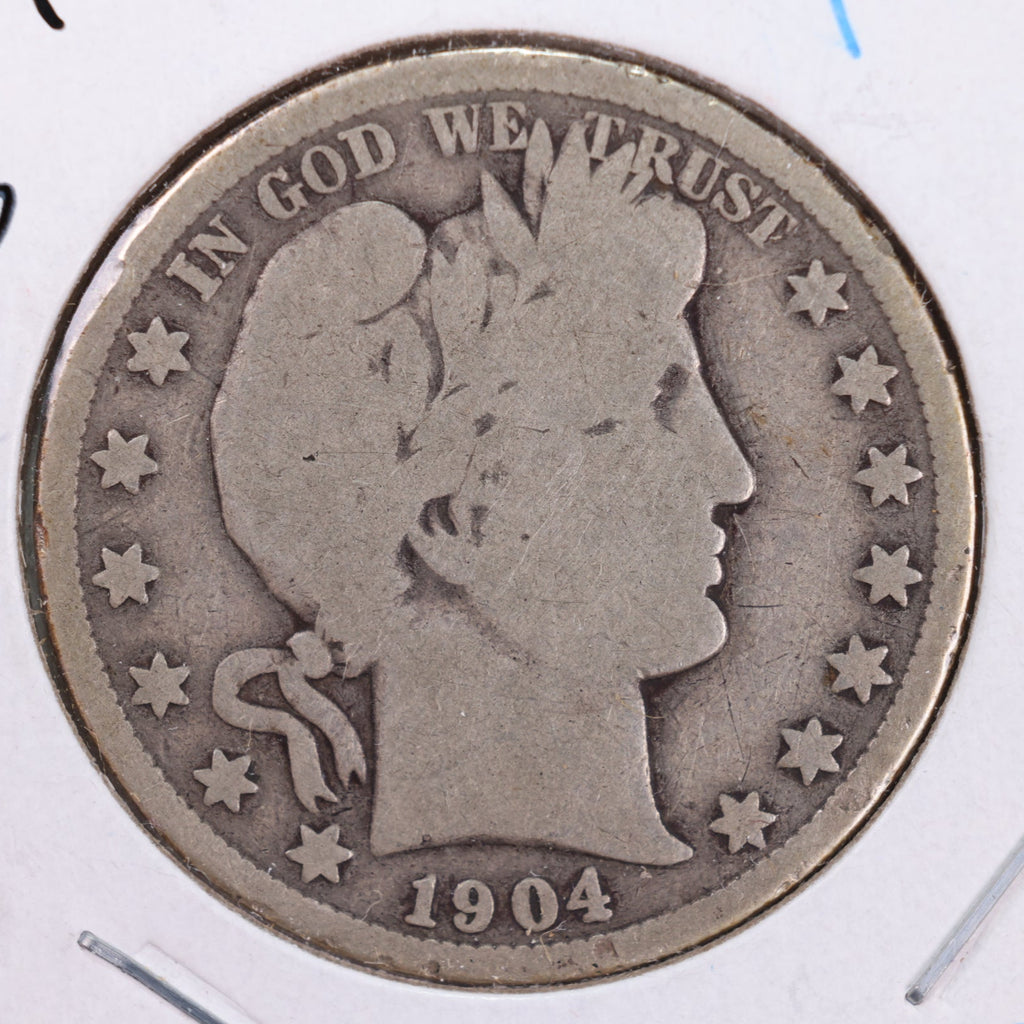 1904 Barber Silver Half Dollar., Very Good., Circulated Coin., Store #HR081