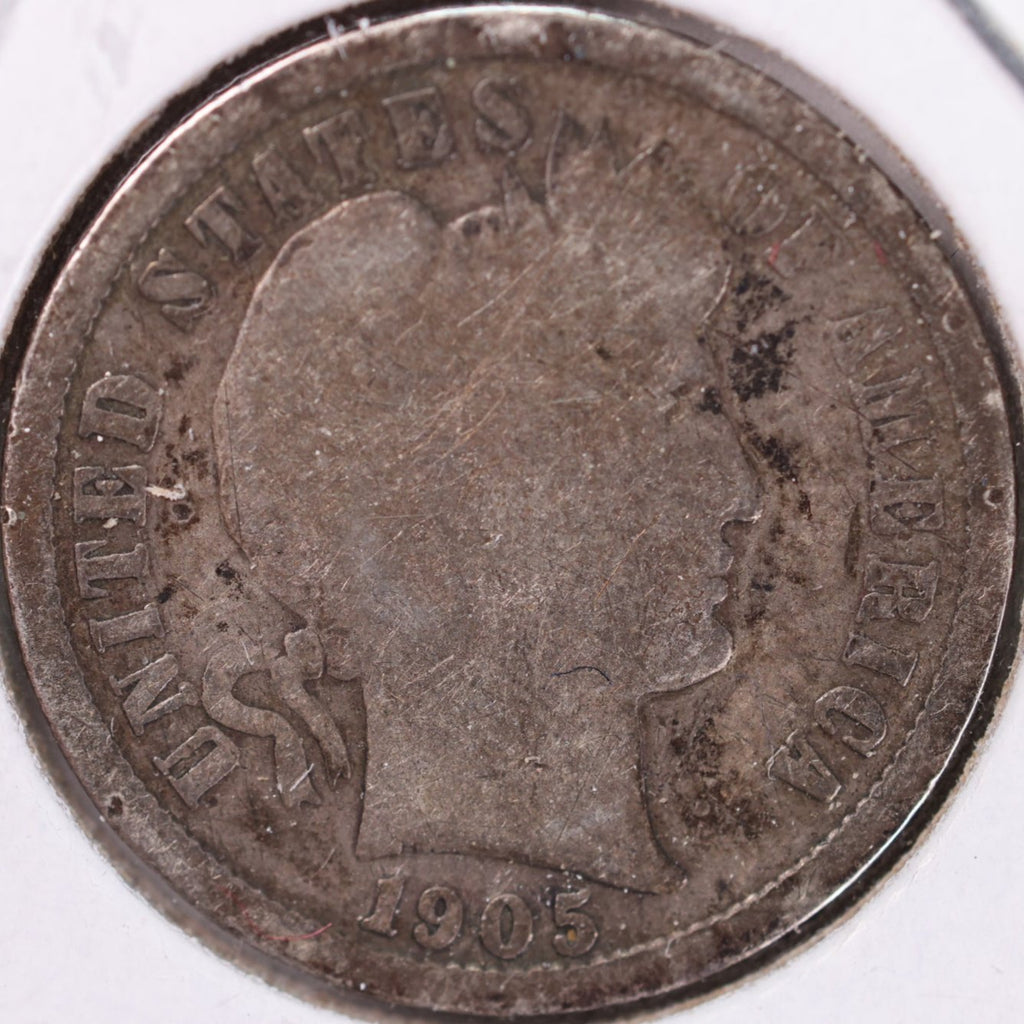 1905-S Barber Silver Dime, Good Circulated Coin, Store #d905S01