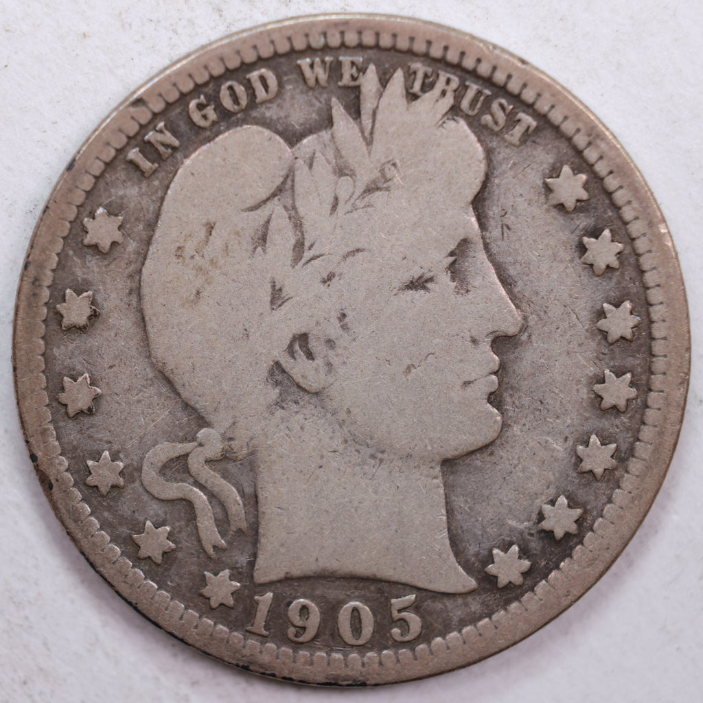 1905 Barber Silver Quarter, Very Good Circulated Coin, Store #QR0460