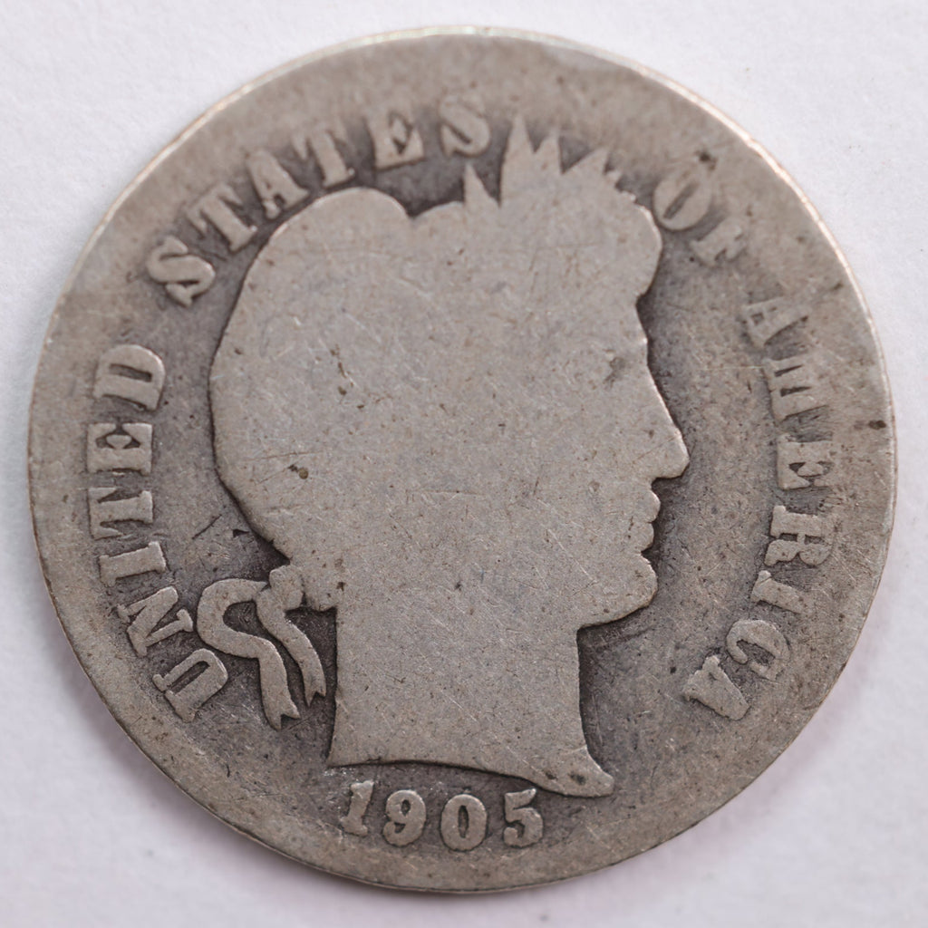 1905 Barber Silver Dime, Abt Good Circulated Coin, Store #DE0472
