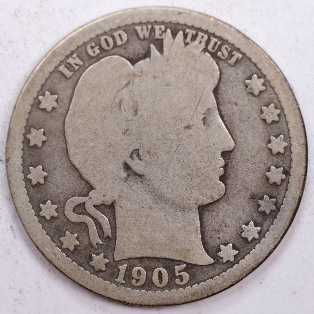 1905-O Barber Silver Quarter, Good Circulated Coin, Store #QR0465