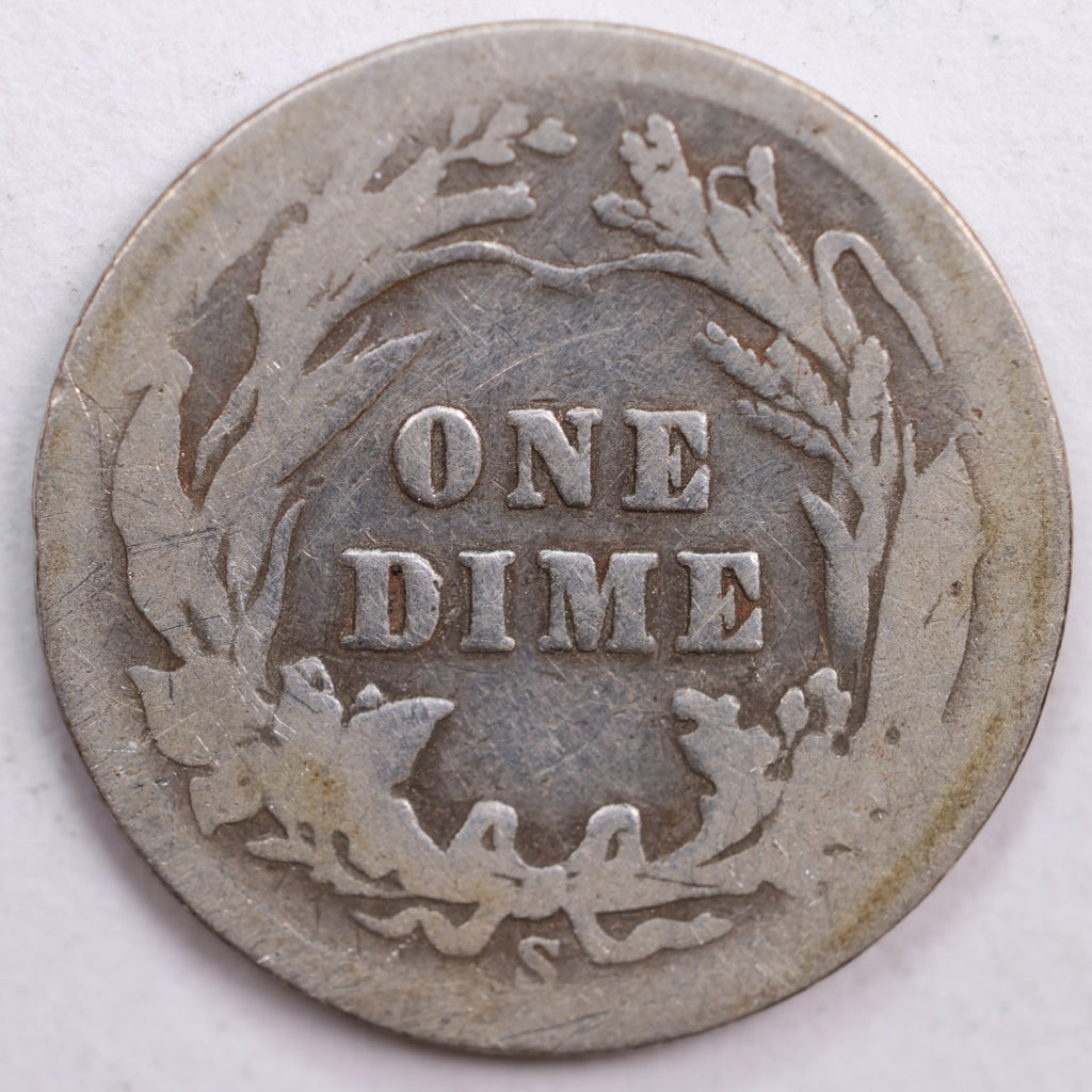 1905-S Barber Silver Dime, Abt Good Circulated Coin, Store #DE0468
