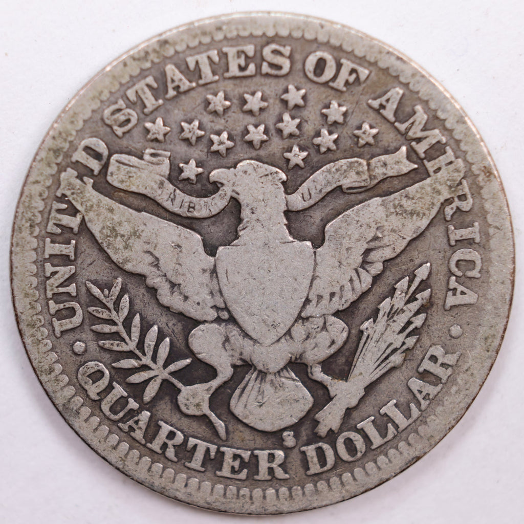 1905-S Barber Silver Quarter, Very Good Circulated Coin, Store #QR0477