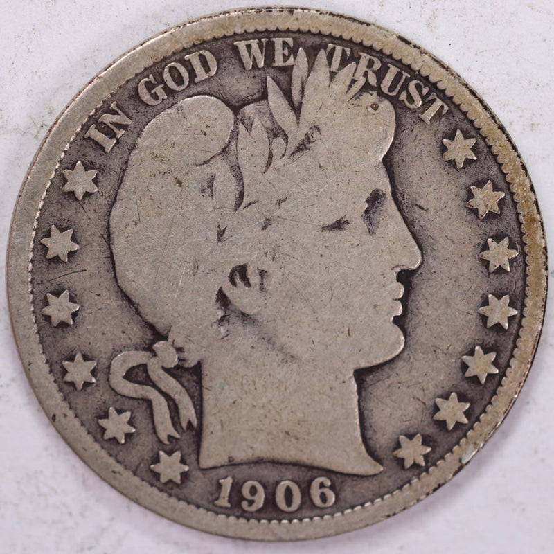 1906 Barber Half Dollar, Very Good Circulated Coin, Store #H906.02