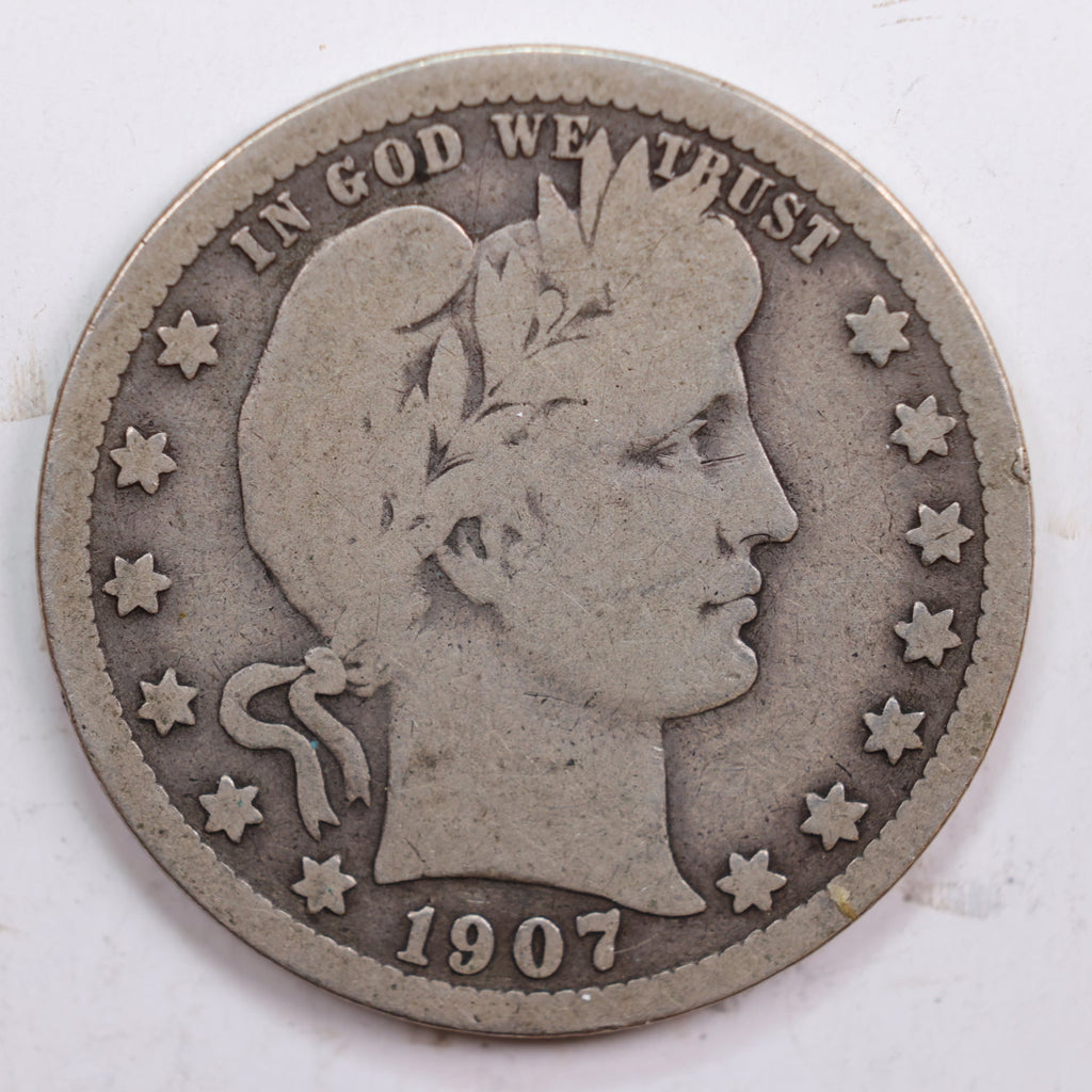 1907 Barber Quarter, Good Circulated Coin, Store #QR706