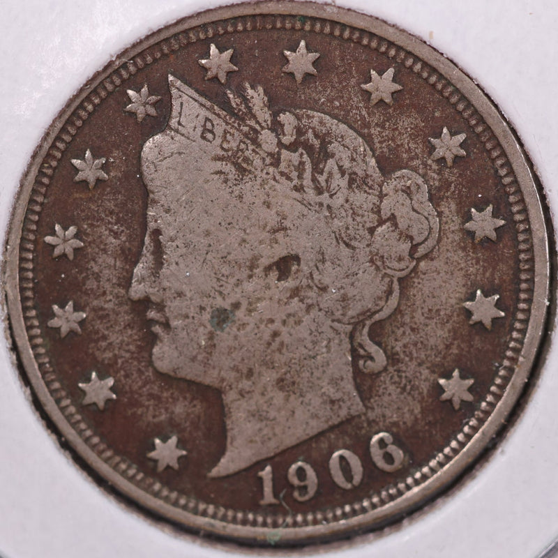 1906 Liberty Nickel, Very Good+ Circulated Coin. Store #12060