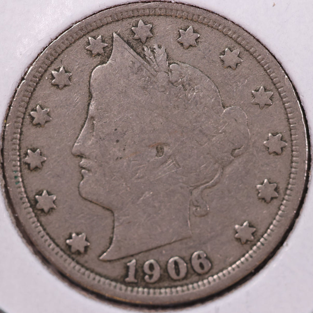 1906 Liberty Nickel, Very Good Circulated Coin. Store #12064