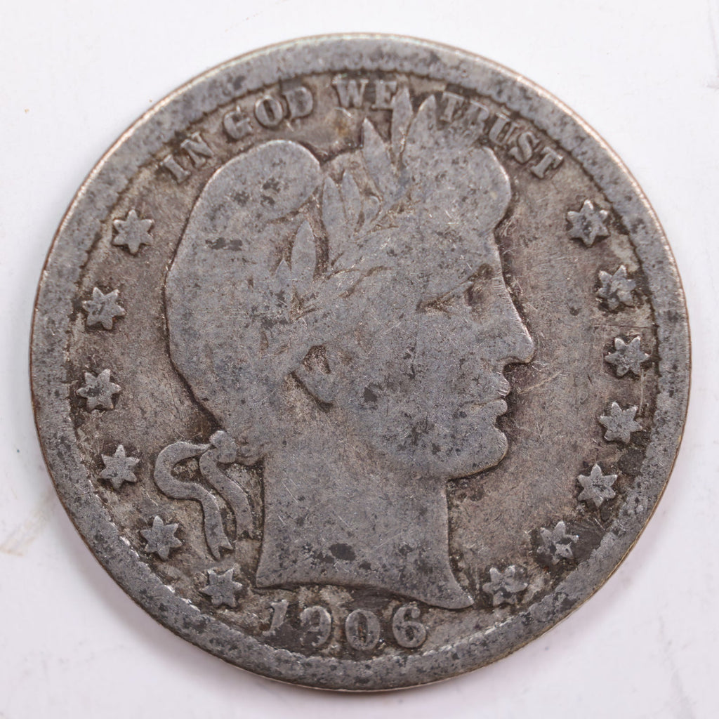 1906 Barber Quarter, Very Good Circulated Coin, Store #QR705
