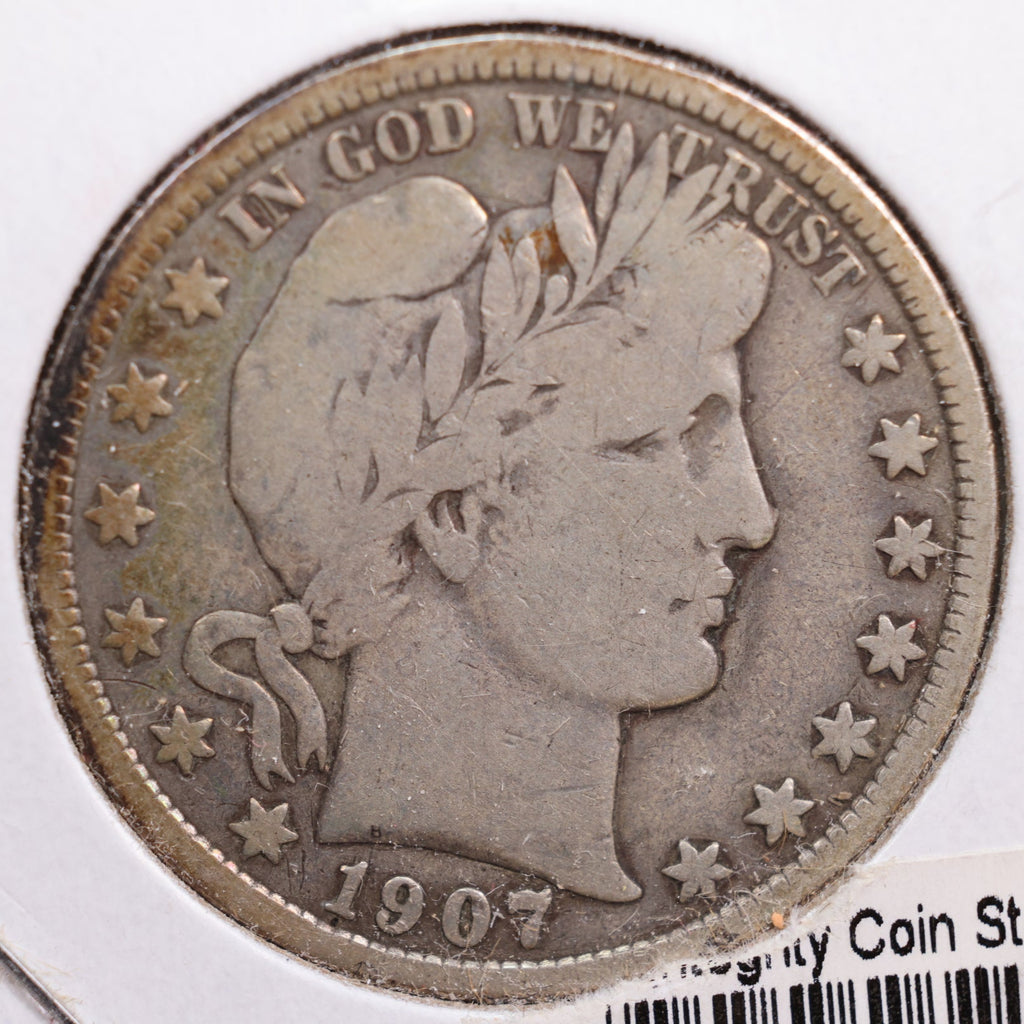 1907 Barber Half Dollar, Very Good+ Circulated Coin, Store #HR0632