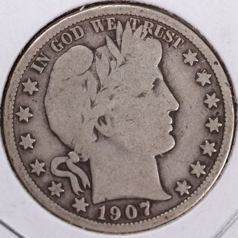 1907 Barber Half Dollar, Very Good Circulated Coin, Store #H907.02