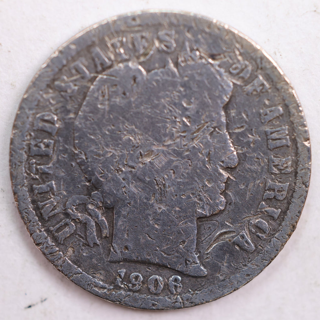 1906-D Barber Silver Dime, Abt Good Circulated Coin, Store #DE0459