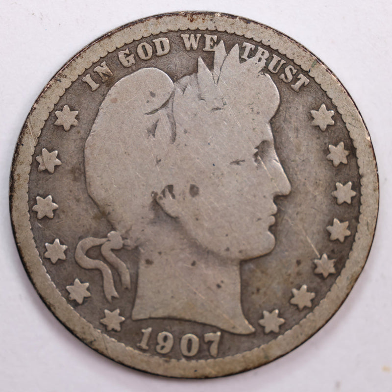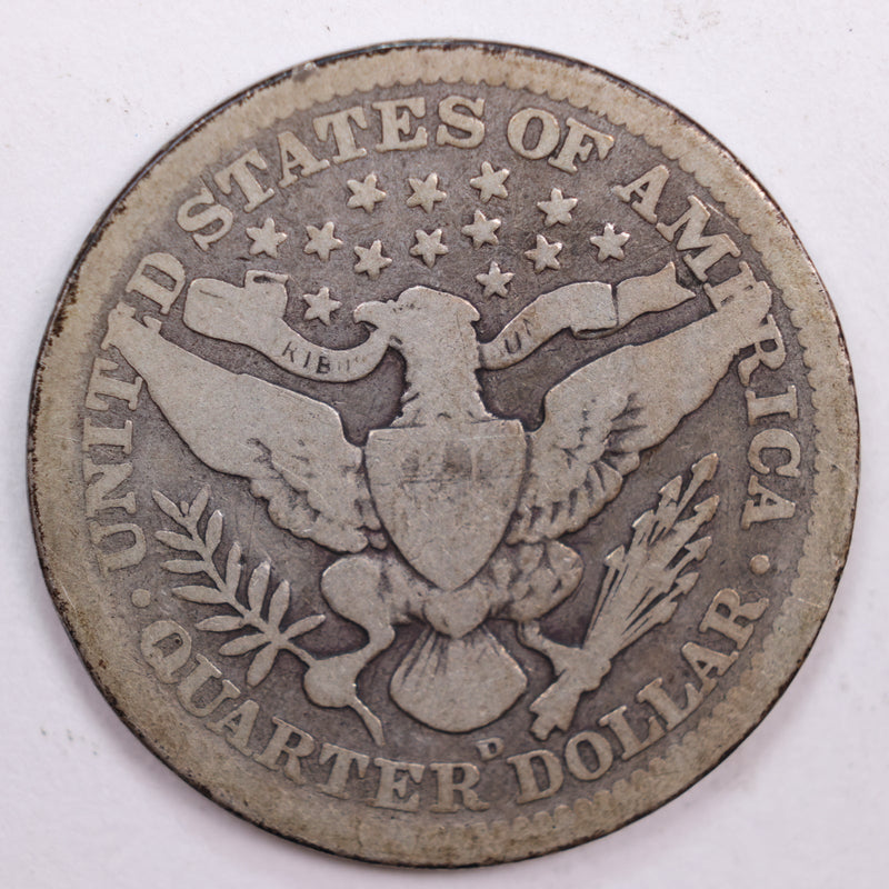 1907-D Barber Silver Quarter, Good Circulated Coin, Store #QR0487