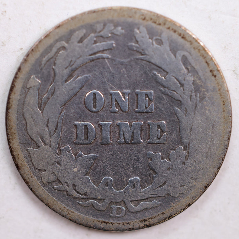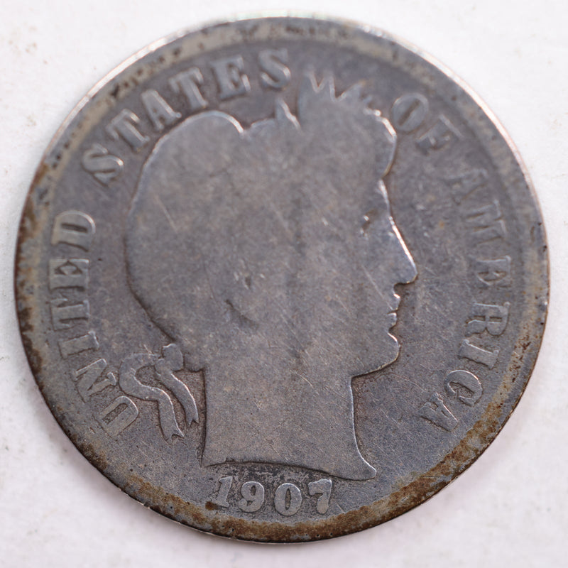 1907-D Barber Silver Dime, Good Circulated Coin, Store #DE0455