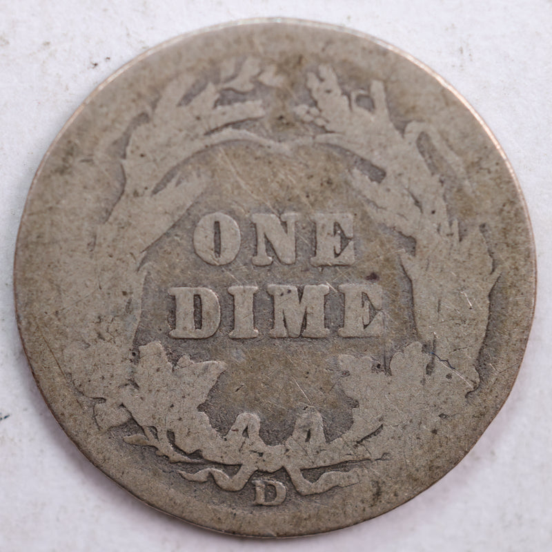 1907-D Barber Silver Dime, Abt Good Circulated Coin, Store #DE0456