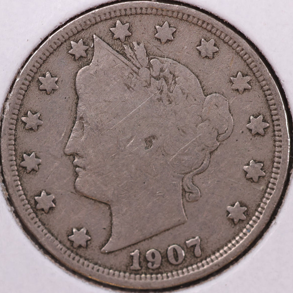 1907 Liberty Nickel, Good+ Circulated Coin. Store #12082