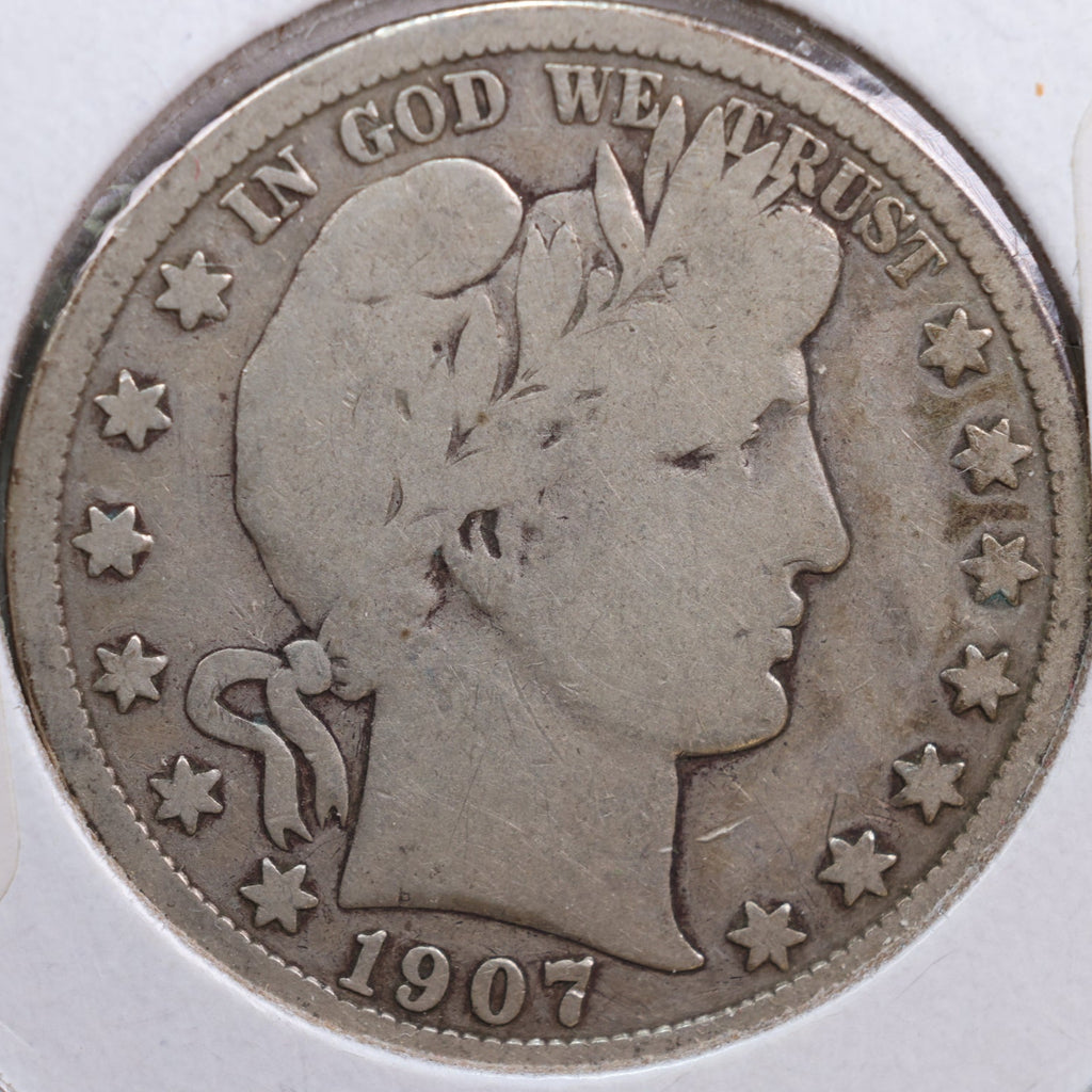 1907-D Barber Half Dollar, Very Good Circulated Coin, Store #HR0628