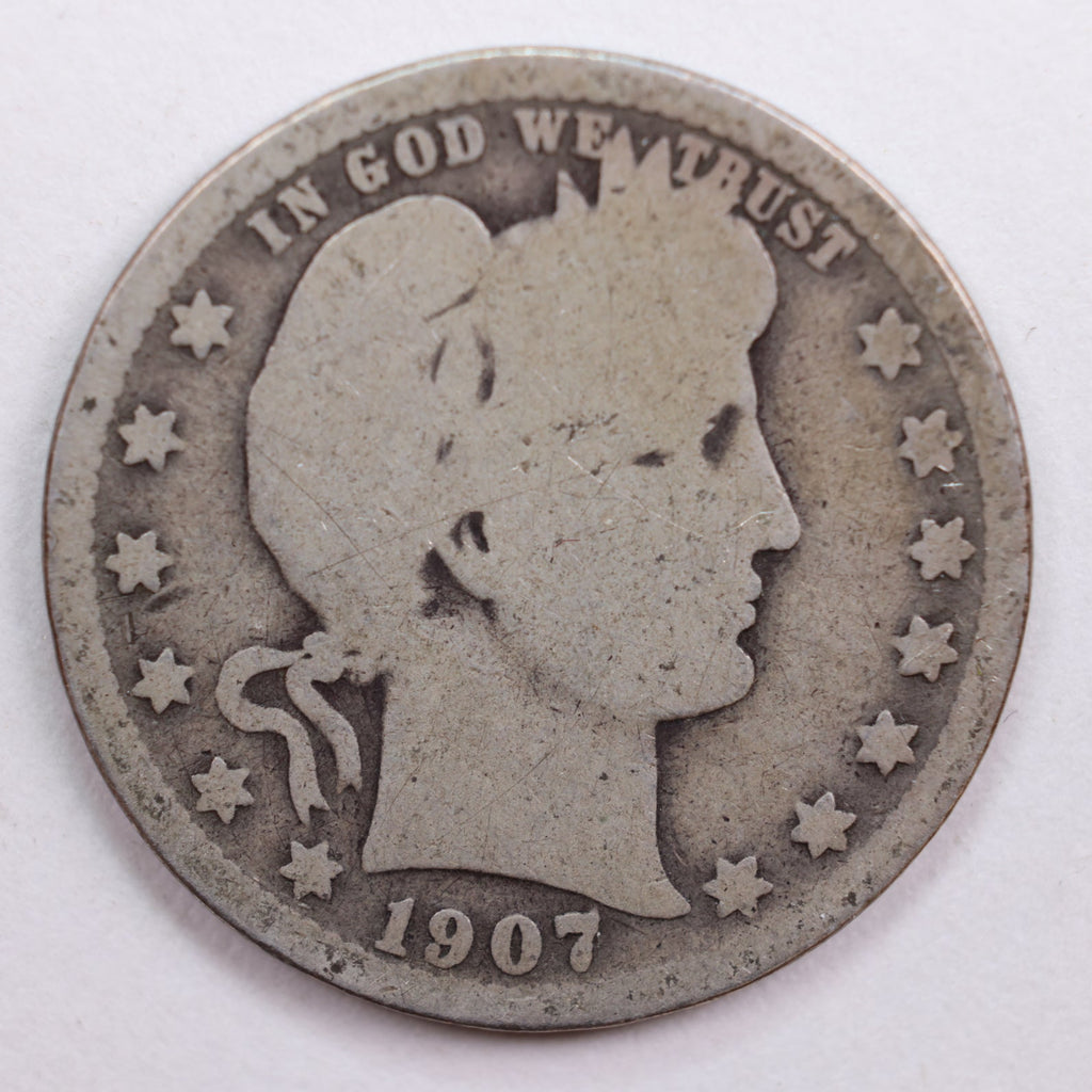 1907 Barber Quarter, Good Circulated Coin, Store #QR710