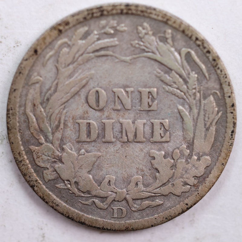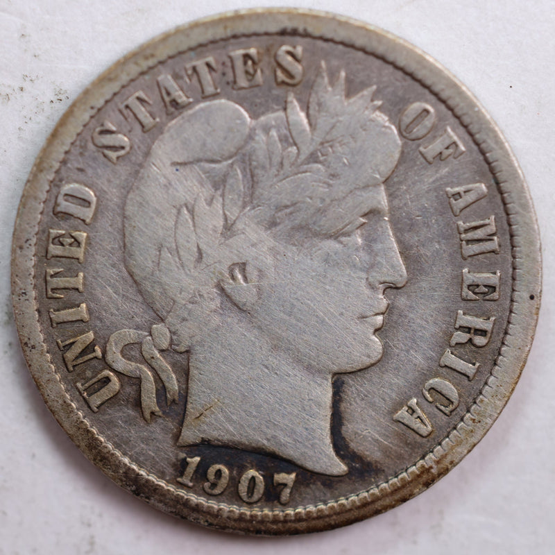 1907-D Barber Silver Dime, Fine Circulated Coin, Store #DE0453