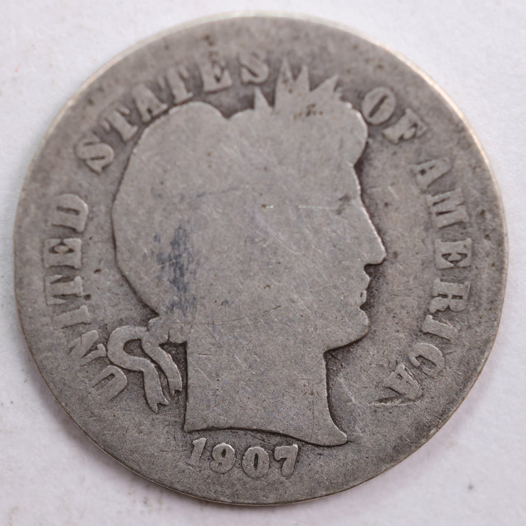 1907-O Barber Silver Dime, Abt Good Circulated Coin, Store #DE0452