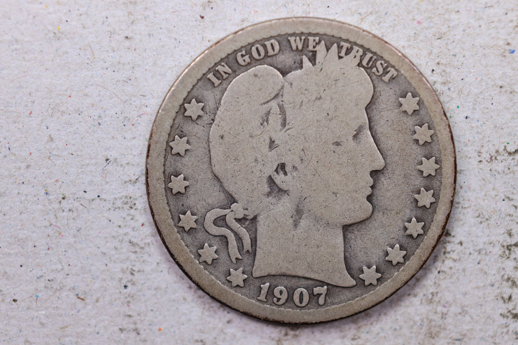 1907-O Barber Silver Quarter., Very Good., Circulated Coin., Store #1418