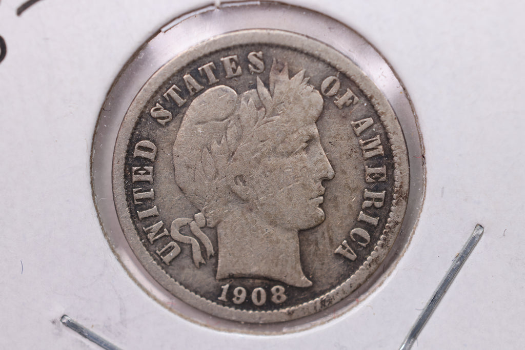 1908 Barber Silver Dime., V.G+., Store Sale #19512