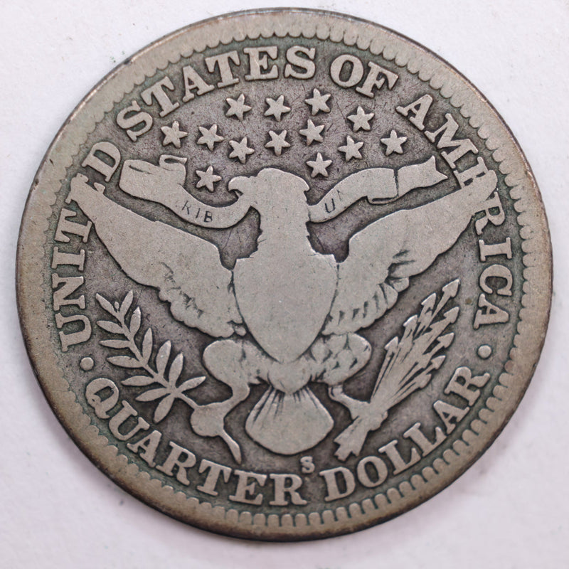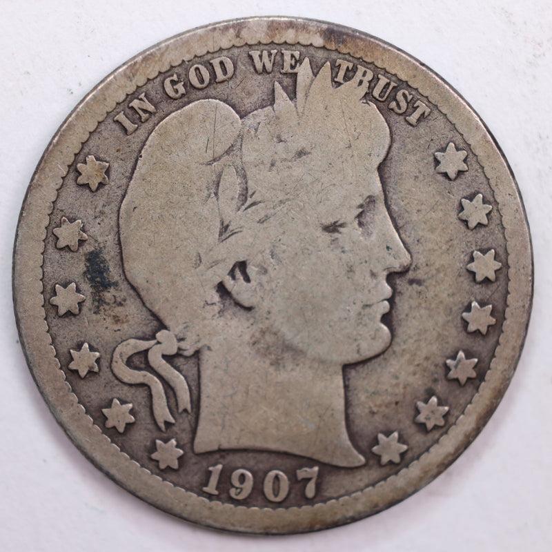 1907-S Barber Silver Quarter, Very Good Circulated Coin, Store #QR0495