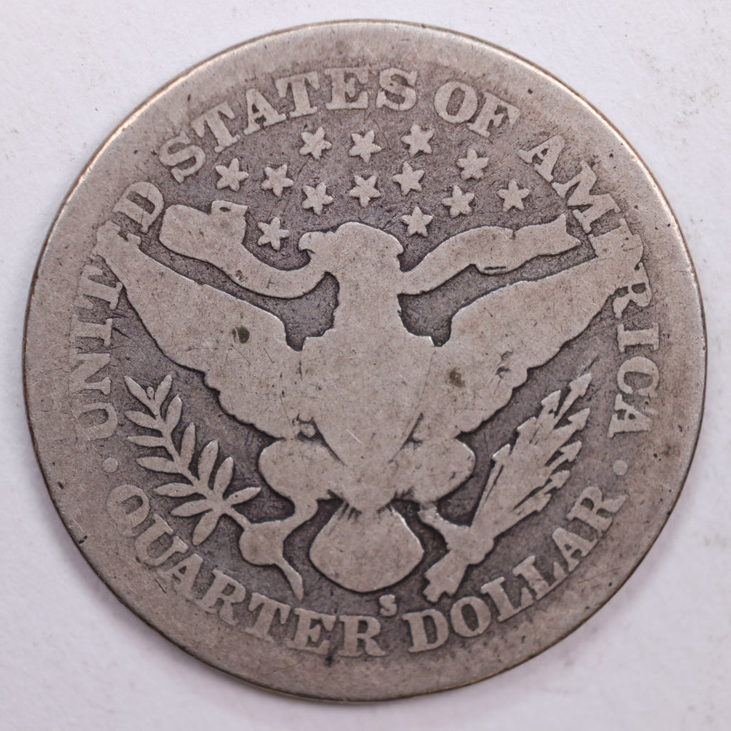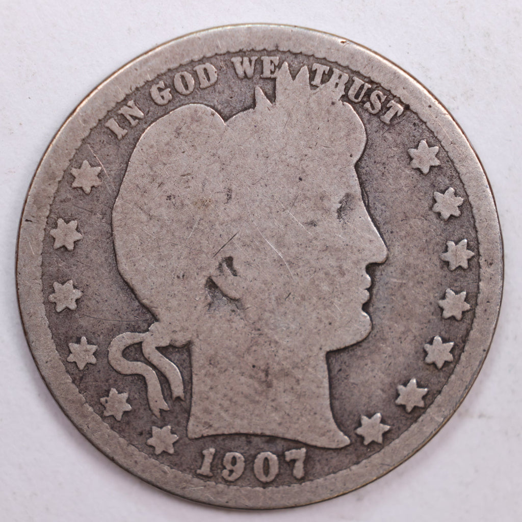 1907-S Barber Silver Quarter, Good Circulated Coin, Store #QR0494