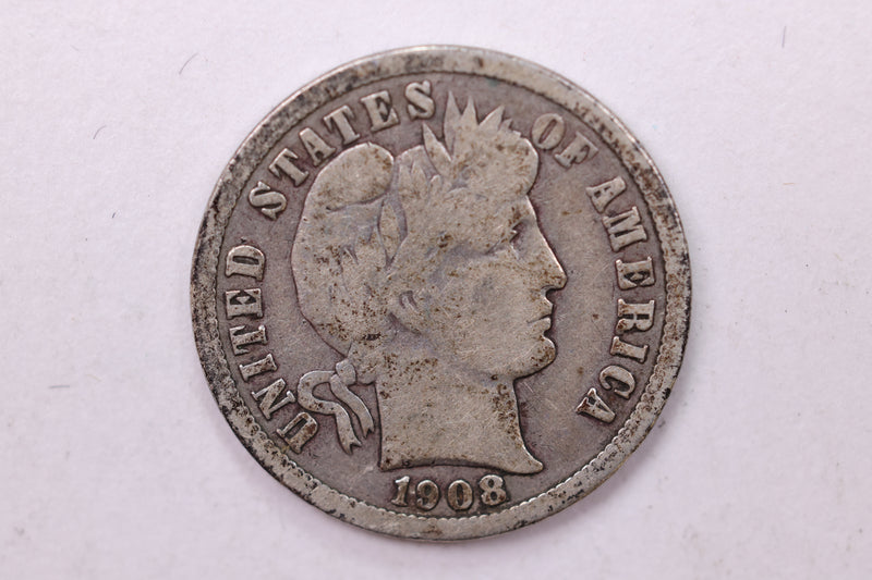 1908-D Barber Silver Dime., Very Good., Store Sale #19180
