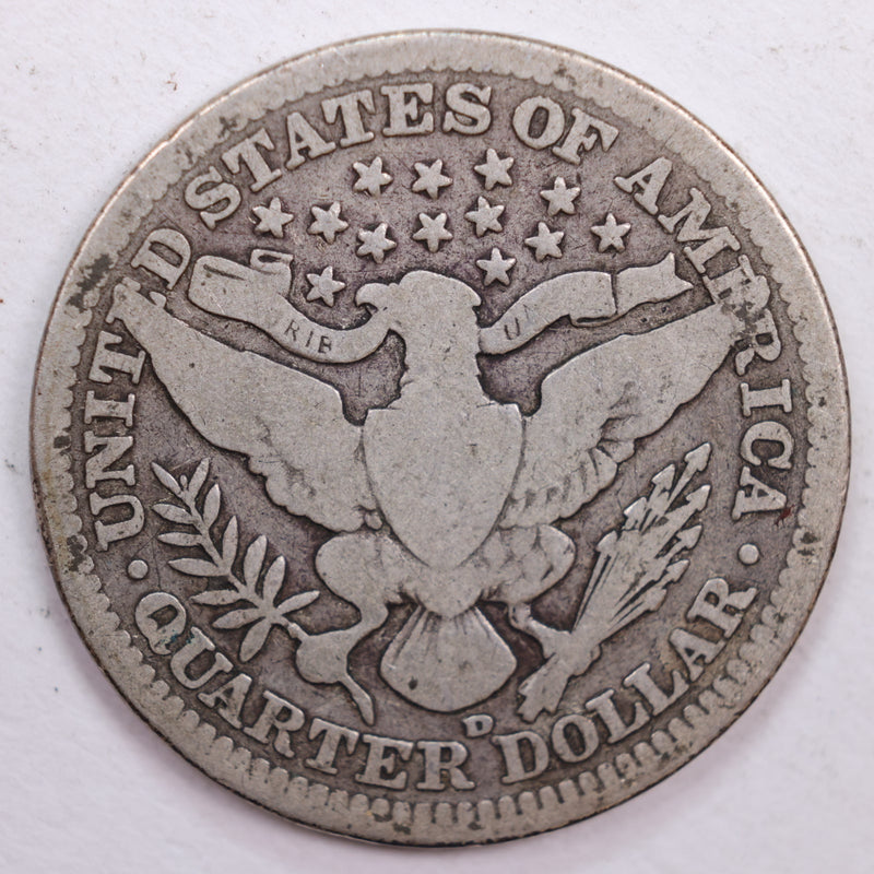 1908-D Barber Silver Quarter, Very Good Circulated Coin, Store #QR0503