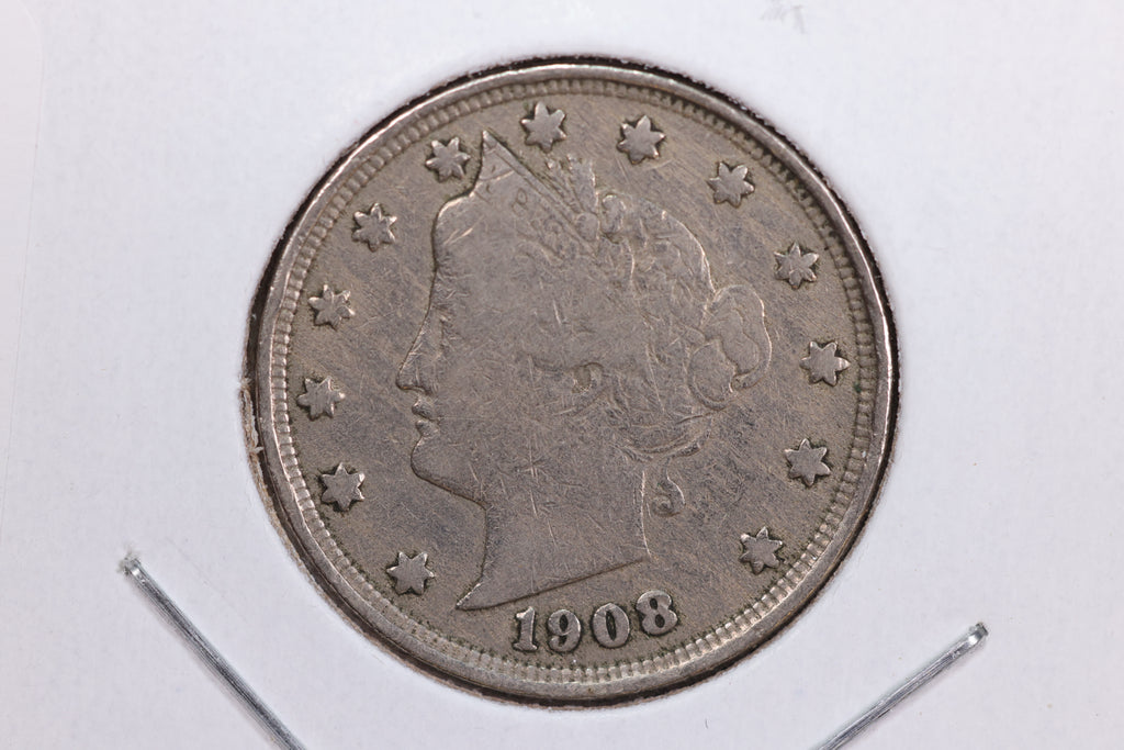 1908 Liberty Nickel, Circulated Collectible Coin. Store #11816