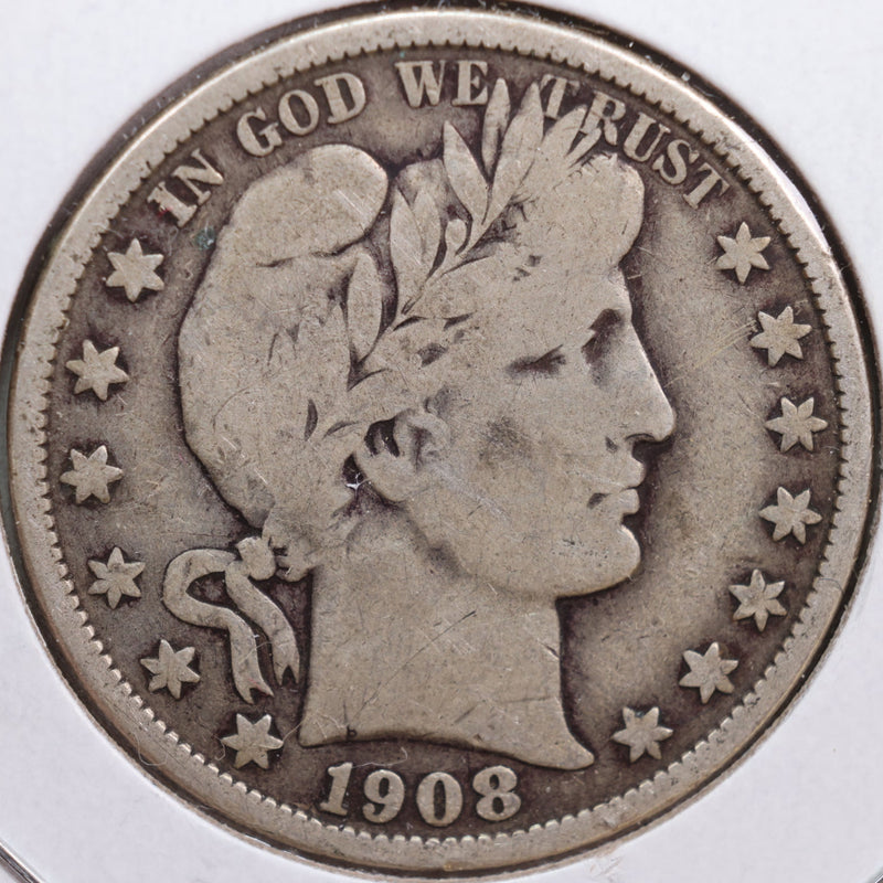 1908-O Barber Half Dollar, Very Good Circulated Coin, Store #HR0609