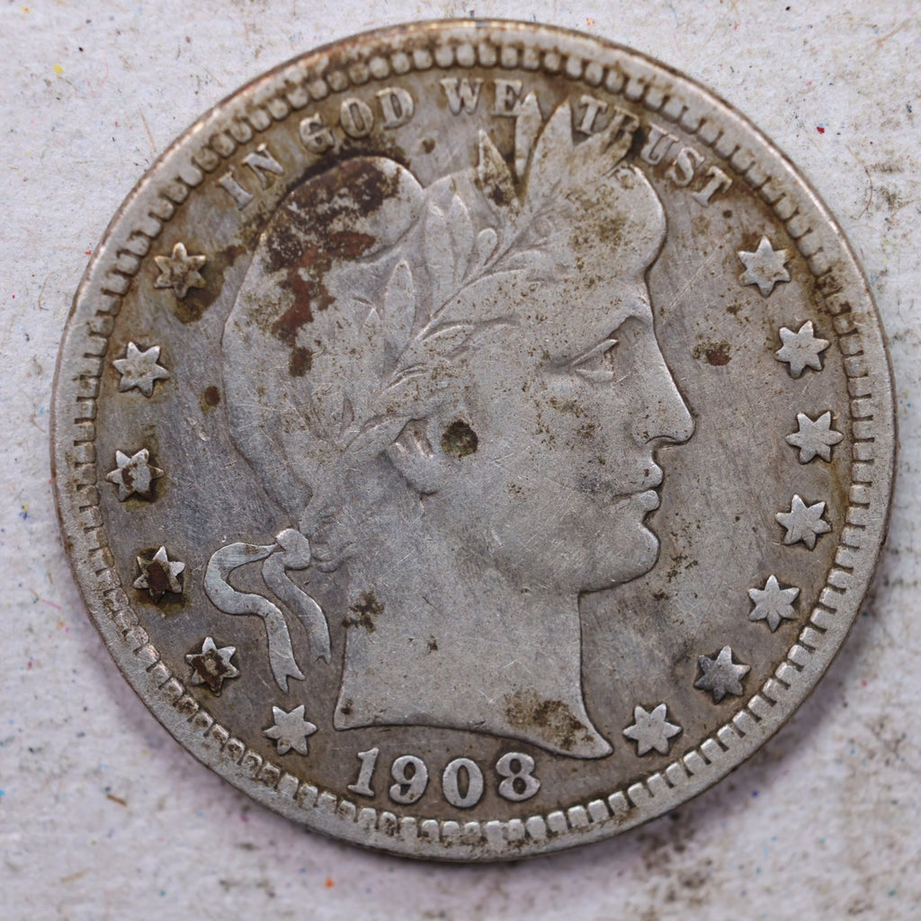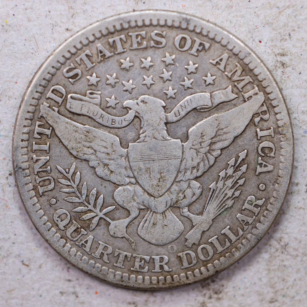 1908-O Barber Silver Quarter., Very Good., Circulated Coin., Store #1428