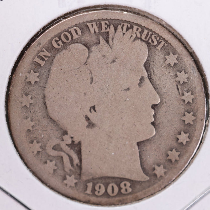 1908-S Barber Half Dollar, Good, Circulated Coin, Store #H908S07