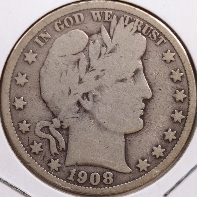 1908-S Barber Half Dollar, Good Circulated Coin, Store #HR0606