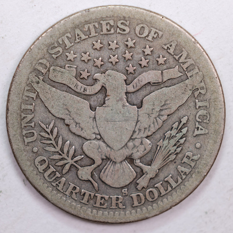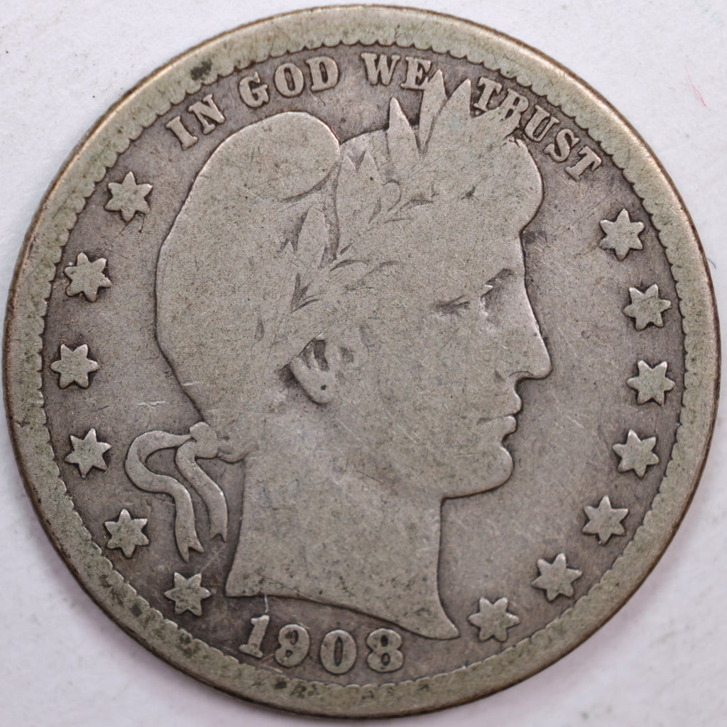 1908-S Barber Silver Quarter, Very Good Circulated Coin, Store #QR0511
