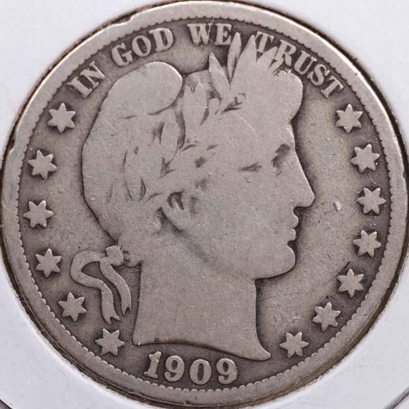 1909 Barber Half Dollar, Good+ Circulated Coin, Store #HR0598