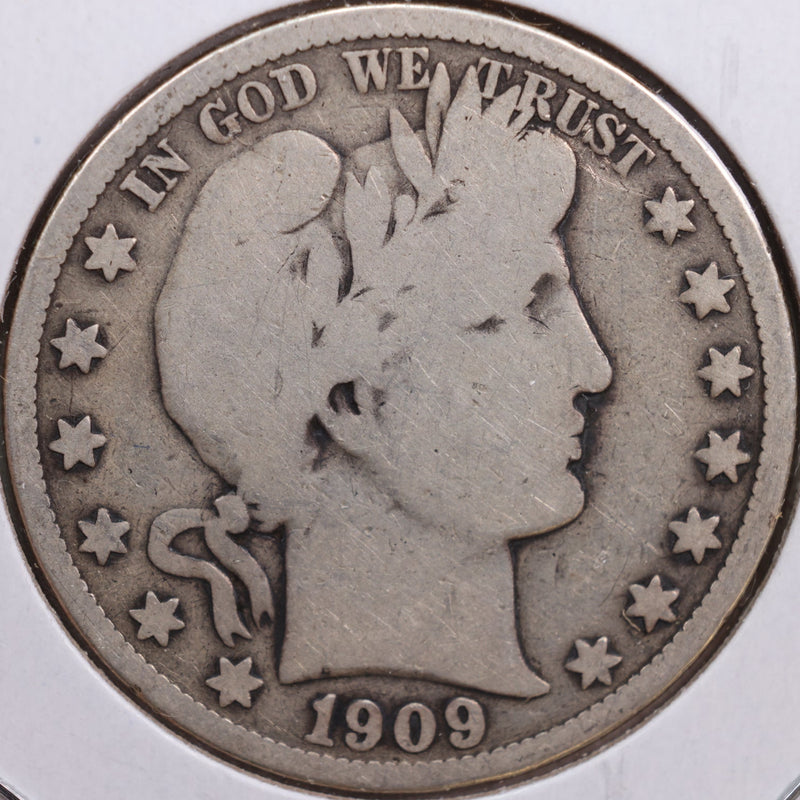1909 Barber Half Dollar, Good Circulated Coin, Store #HR0603