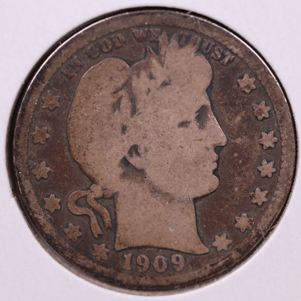 1909 Barber Silver Quarter., Fine, Circulated Coin., Store#1027
