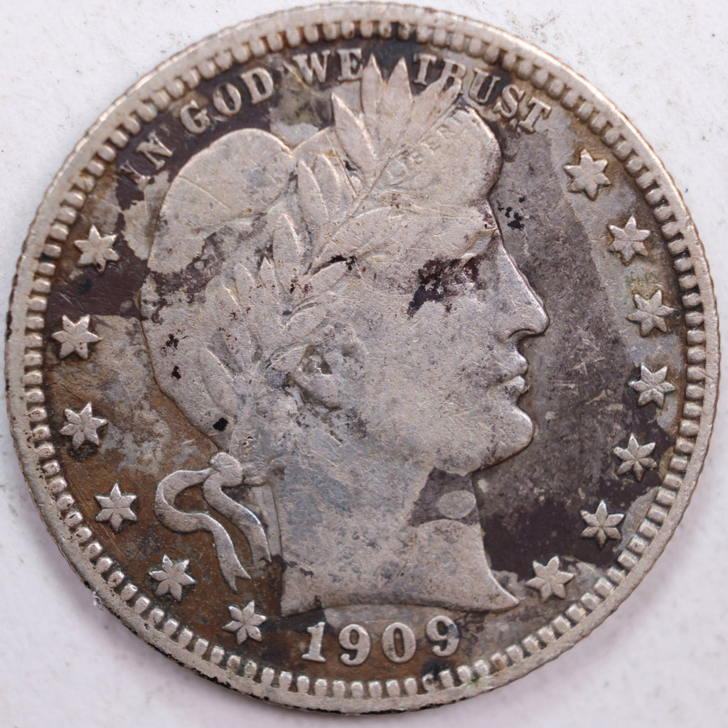 1909 Barber Silver Quarter, Very Fine Circulated Coin, Store #QR0519