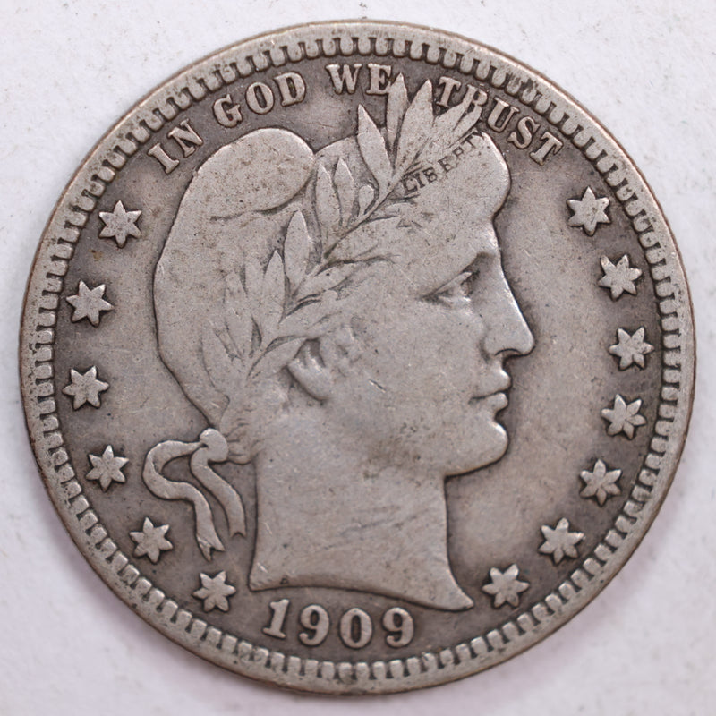 1909 Barber Silver Quarter, Fine Circulated Coin, Store #QR0518