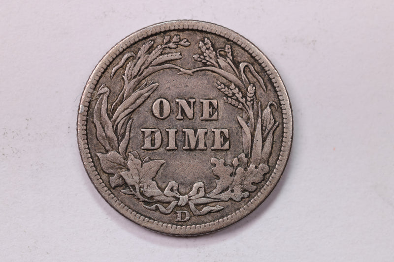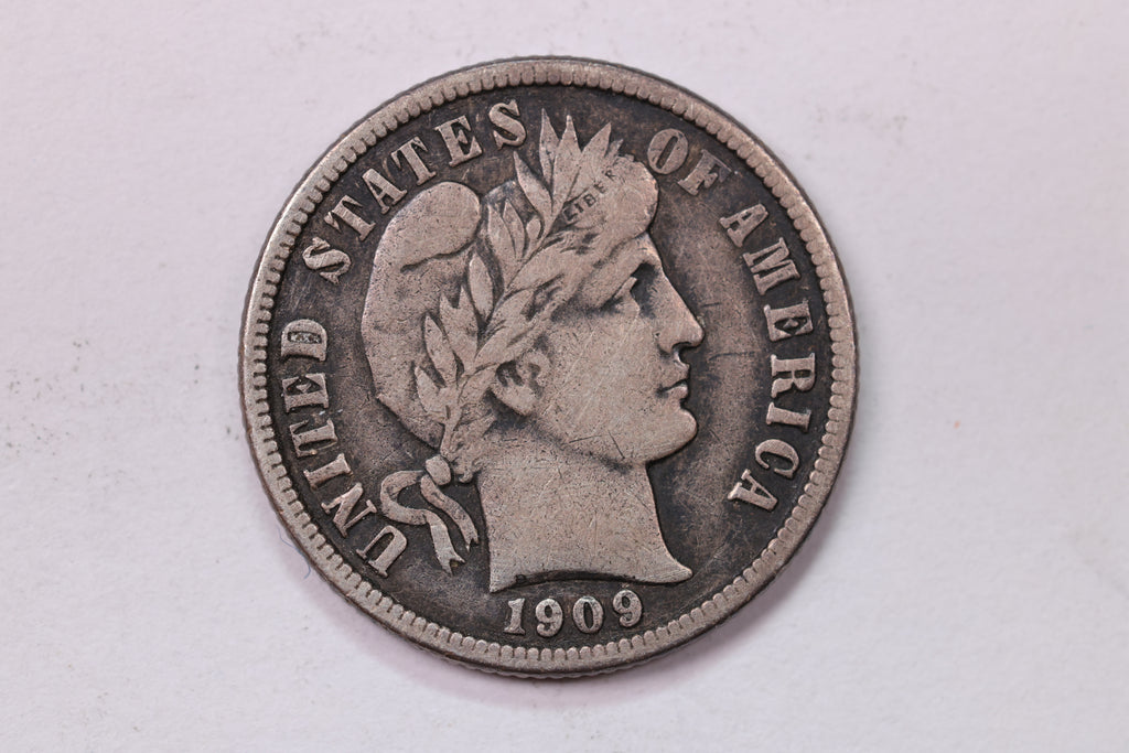 1909-D 10 Cent., Barber Silver Dime., Very Fine Coin., Store #1701