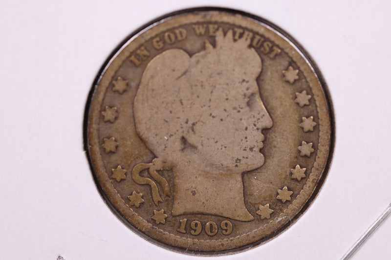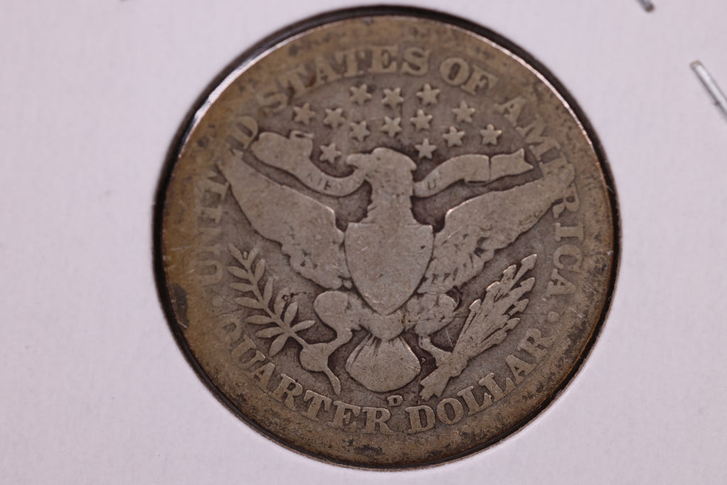 1909-D Barber Silver Quarter., Very Good Circulated Coin., Store#1030