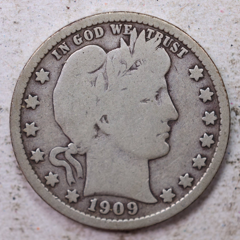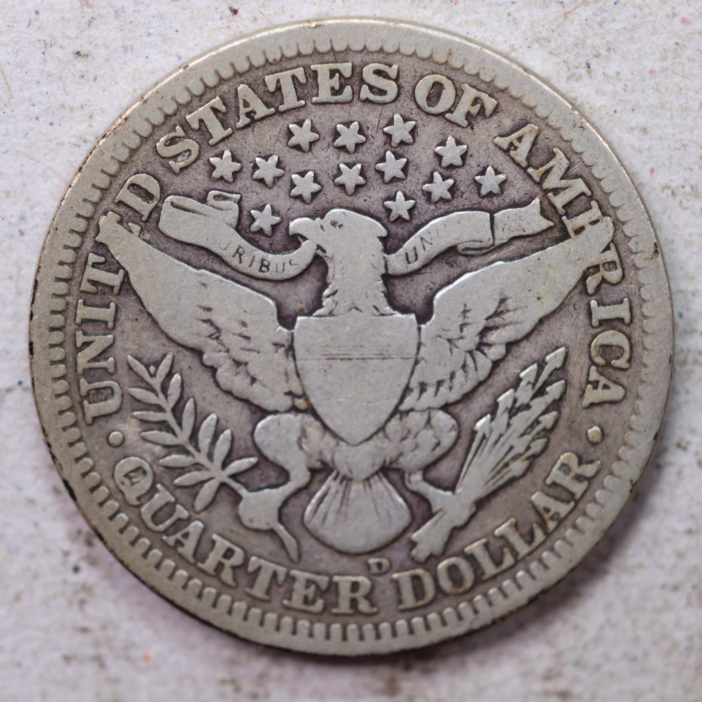 1909-D Barber Silver Quarter., Very Good., Circulated Coin., Store #1436