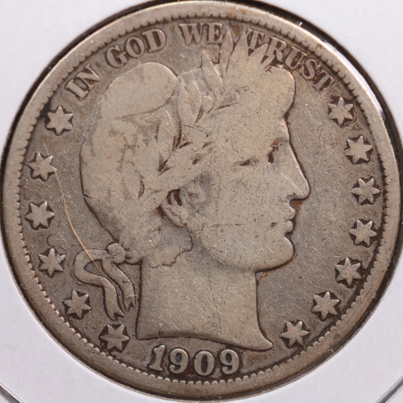 1909-O Barber Half Dollar, Very Good+ Circulated Coin, Store #HR0591