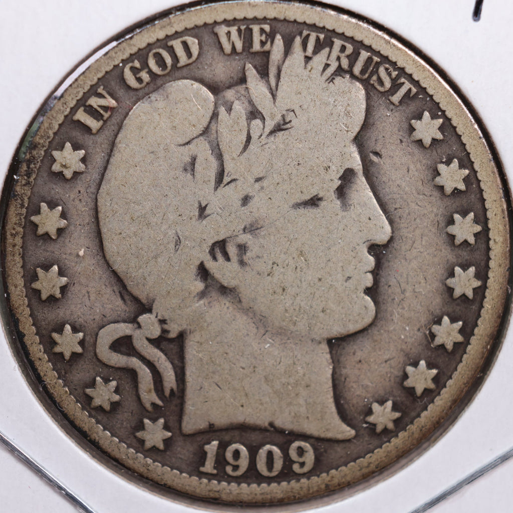 1909 Barber Half Dollar, Very Good Circulated Coin, Store #HR0596