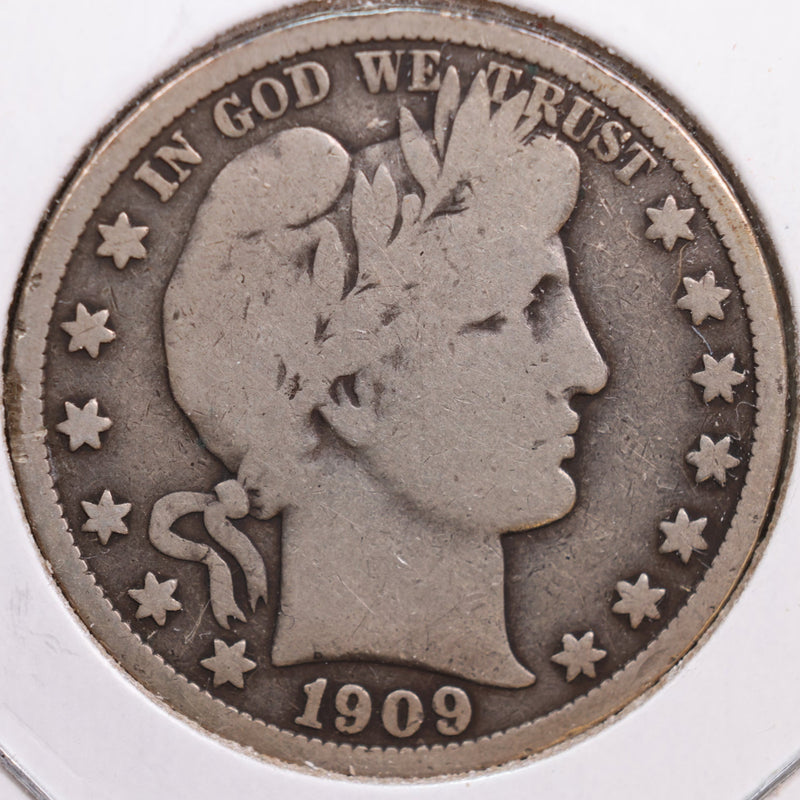 1909-S Barber Half Dollar, Very Good+ Circulated Coin, Store #HR0588